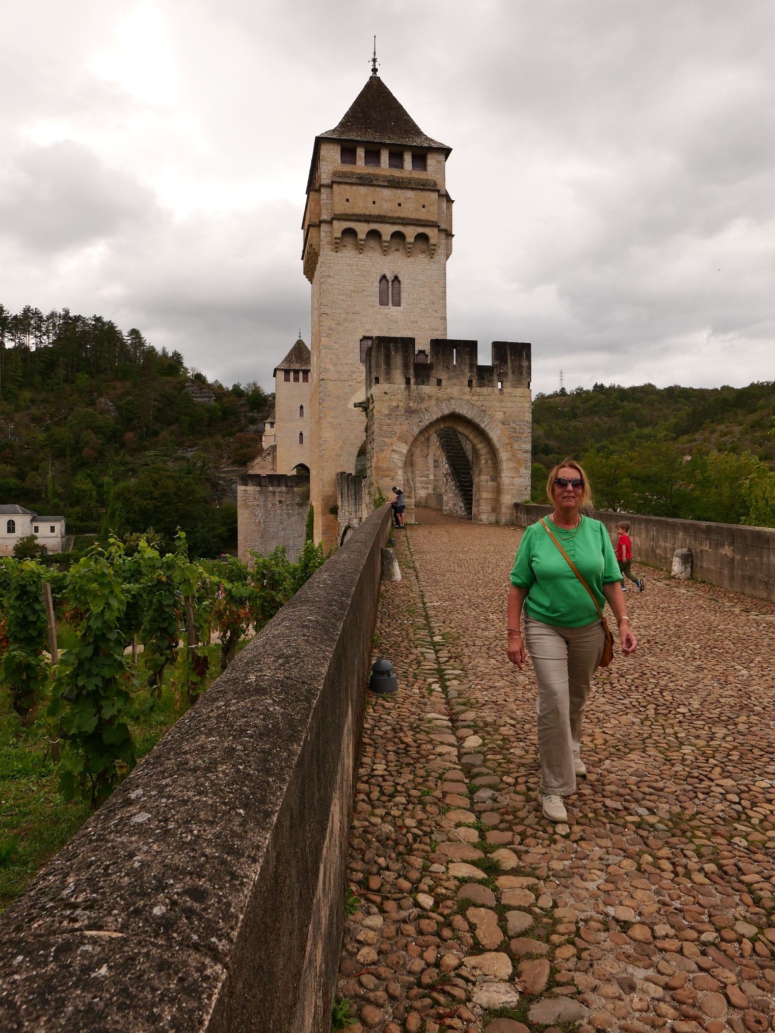 Rustig opstaan, en nog even wat laatste knoppen indrukken voor Deltawerkers. We rijden naar Cahors. Prima parkeerplek aan het centrum. Veel wandelaars en pelgrims. Schitterende bruggen over de Lot. Als we de oude stad inlopen, komen we bij een stempelkantoor voor de wandelaars van de Route Saint Jacques. Ook kun je hier een kamer / overnachting regelen bij mensen thuis.