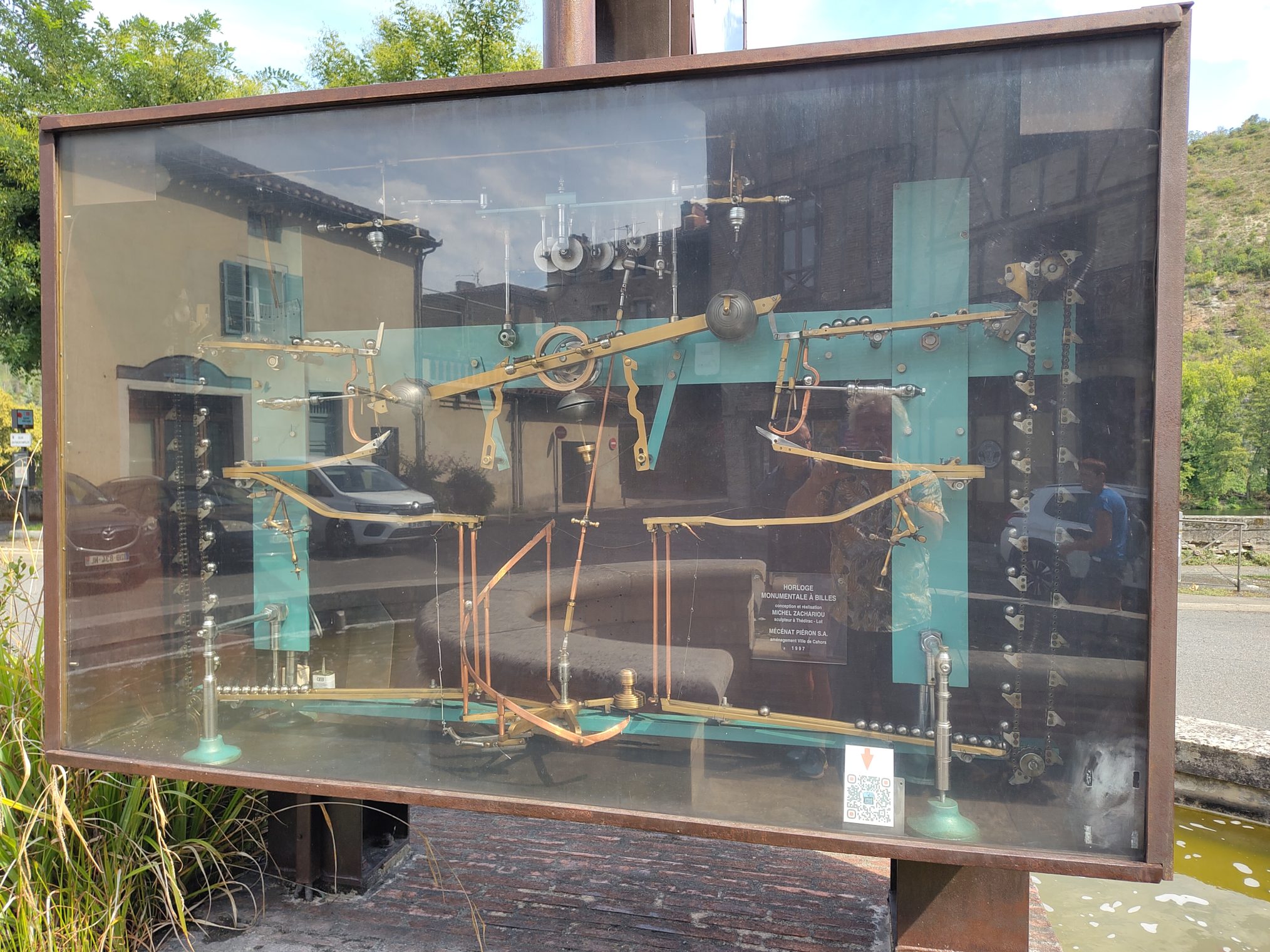 Heerlijk weer en als we up-tempo lopen, best warm. Mooie gebouwen aan het water, een watermolen en sluis. Ook een kunstwerk een perpetuum mobile in de vorm van een klok. Indrukwekkend.