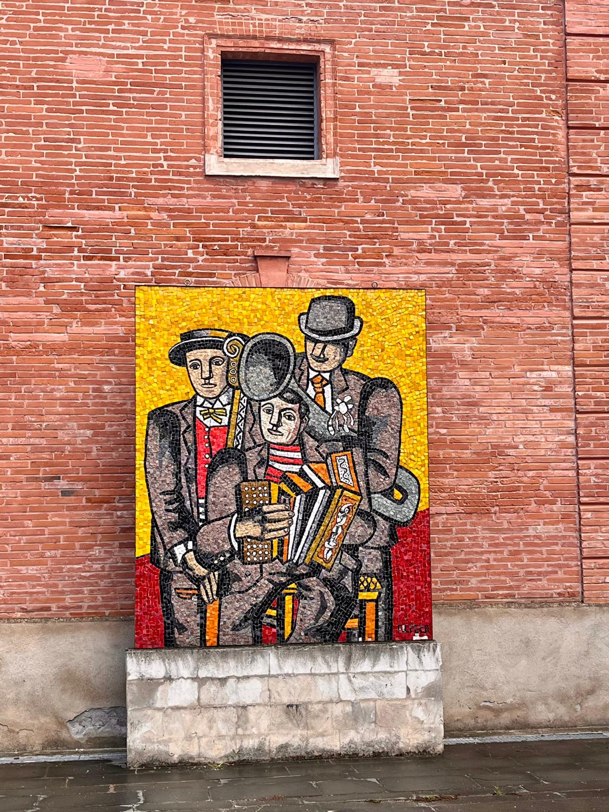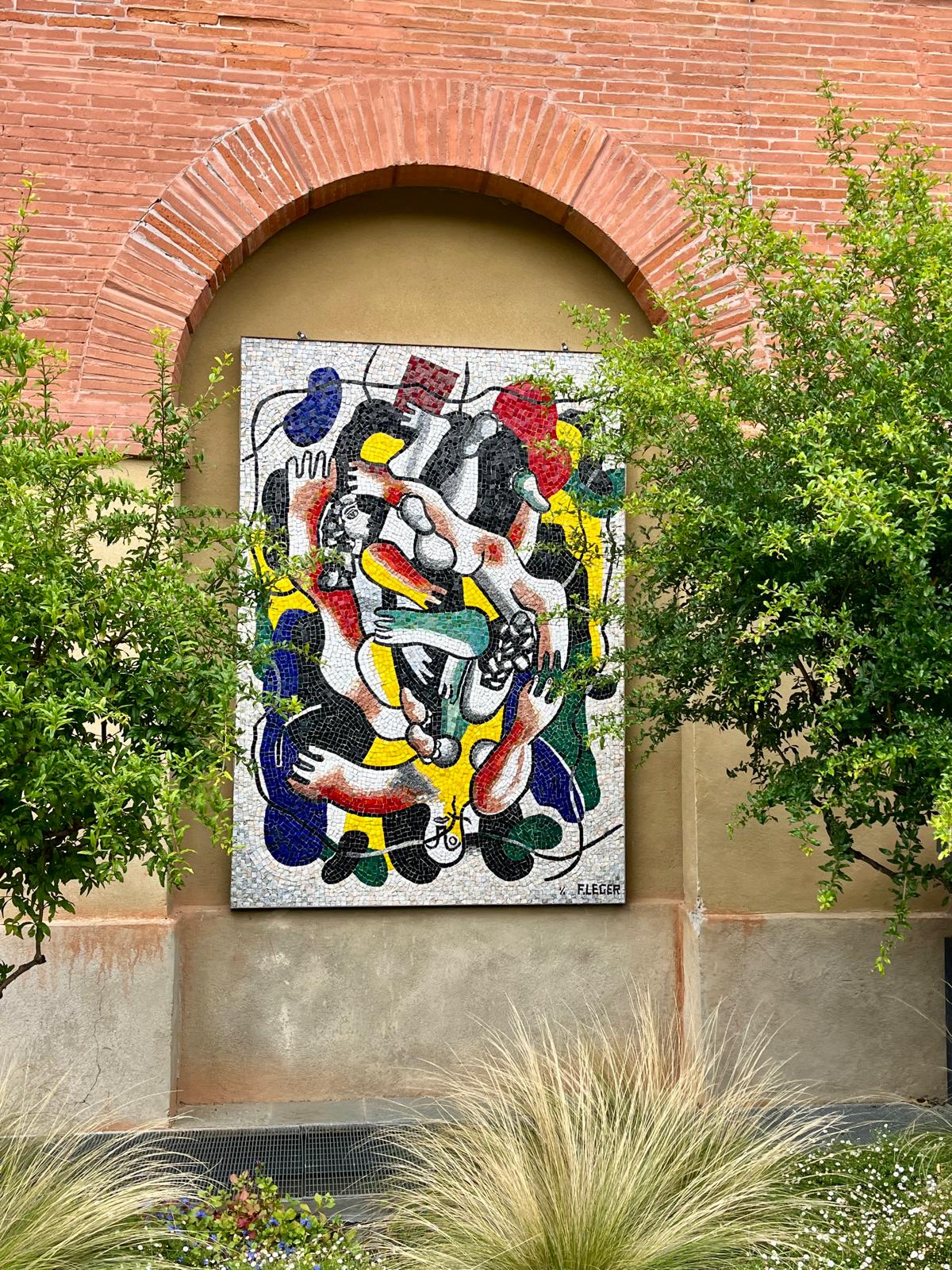Daarna zou je eigenlijk wel ff willen dutten, maar Anne gaat het museum in en ik ga met Pieter wandelen. Mooi parkje en ook mogelijkheid om langs de rivier de Garonne te lopen. Er is een beste sluis, en mooi terras wat ik even links laat liggen. Met een teckel lopen geeft altijd contact. Nu een Vlaming die zijn eigen mini teckel mist en even wil spelen met Pieter. Mooie buiten meubels en meerdere bankjes met mozaïeken van Fernand Léger. Mooi wandeltje.