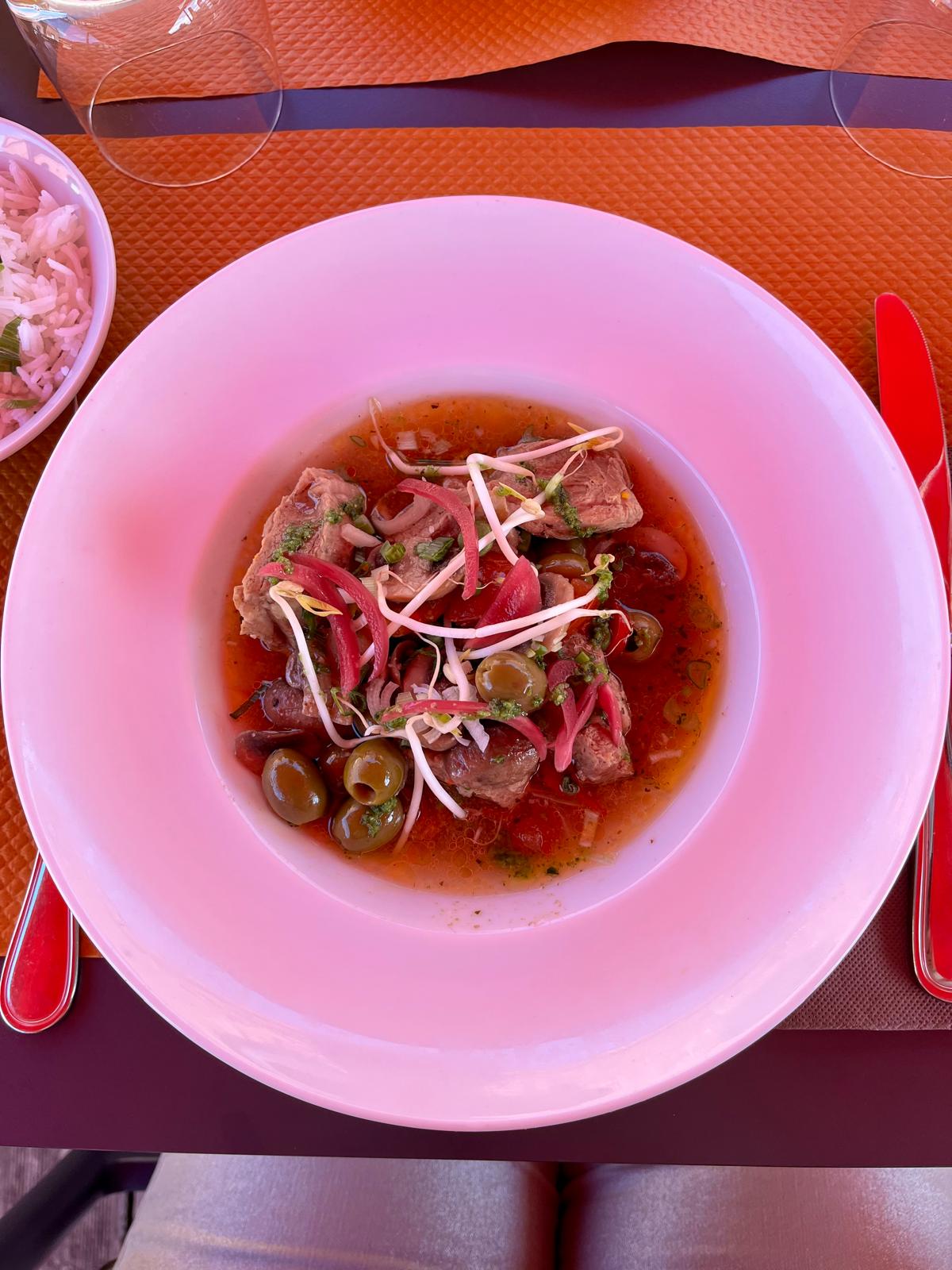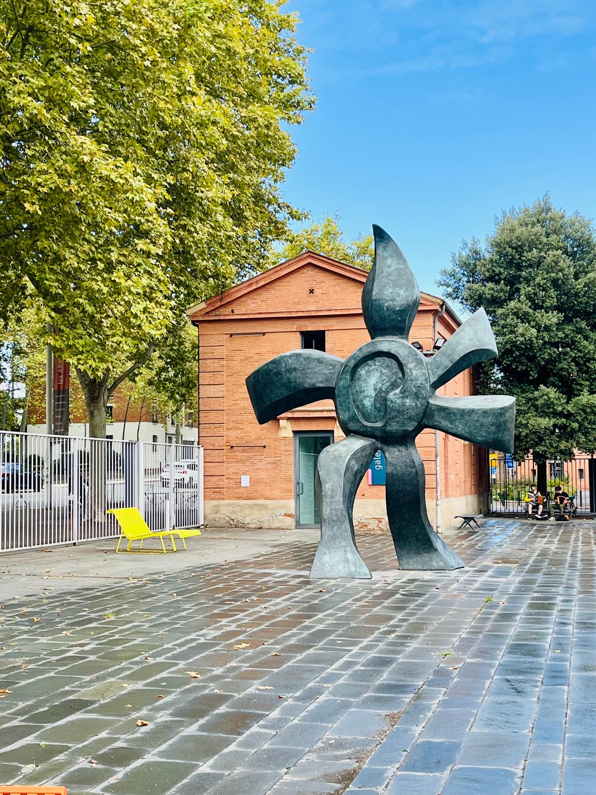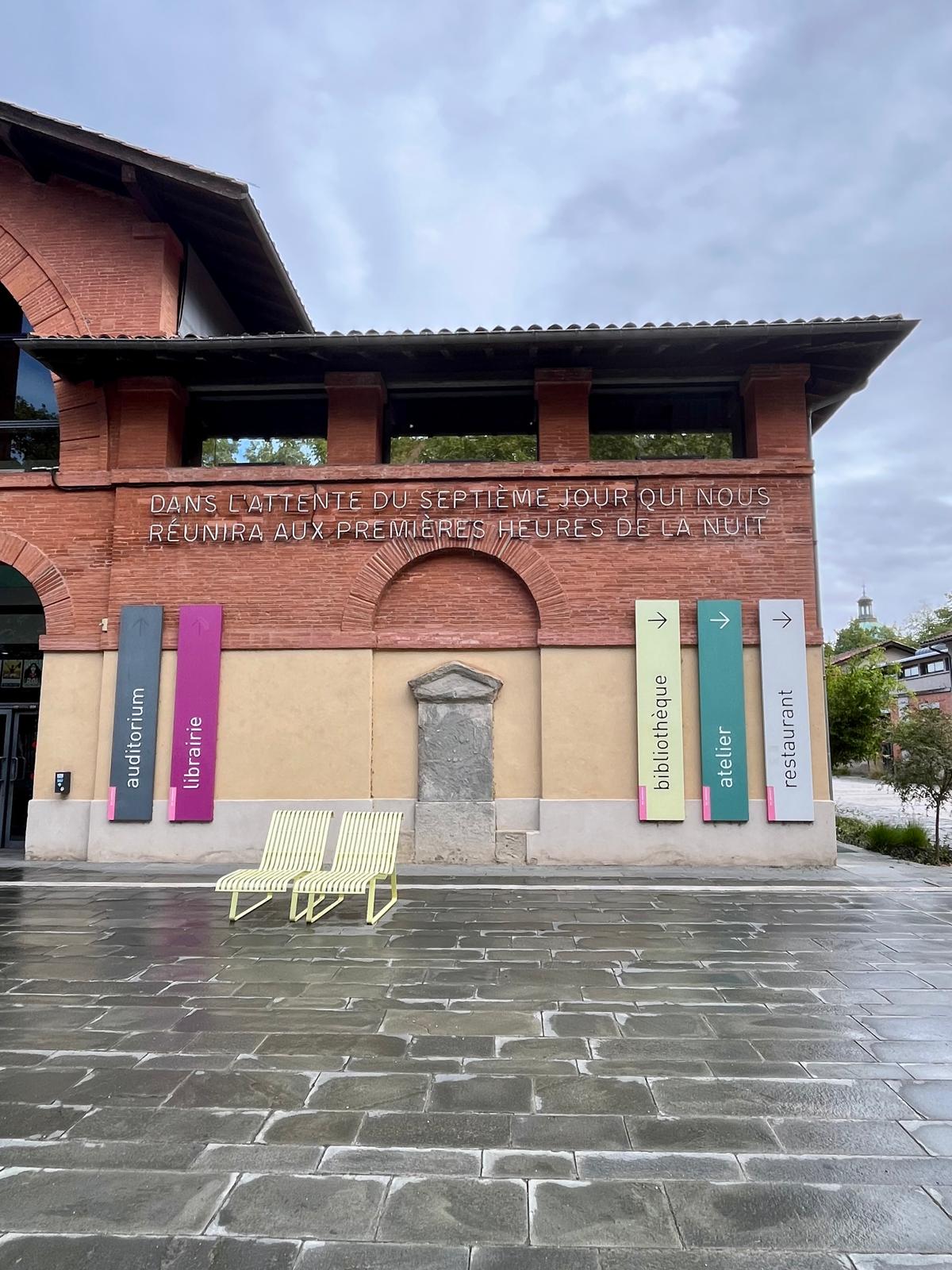 Vanaf het station lopen we 10 minuten naar metro Marengo, zo komen we bij Les Abattoirs, nu een museum, bieb en theater. Buiten de metro bivakkeren hier gezinnen in half gammele tentjes, peutertje van misschien 2 op blote voetjes. Zoals mijn moeder zou zeggen: “ geen net buurtje brrr “. Museum is gesitueerd in de oude slachterij. Ondertussen is het al zeker lunchtijd. Eerst lunchen, het kan wel buiten gelukkig. Heerlijk vlees en groentes en rijst. En chocolade-perentaart toe.