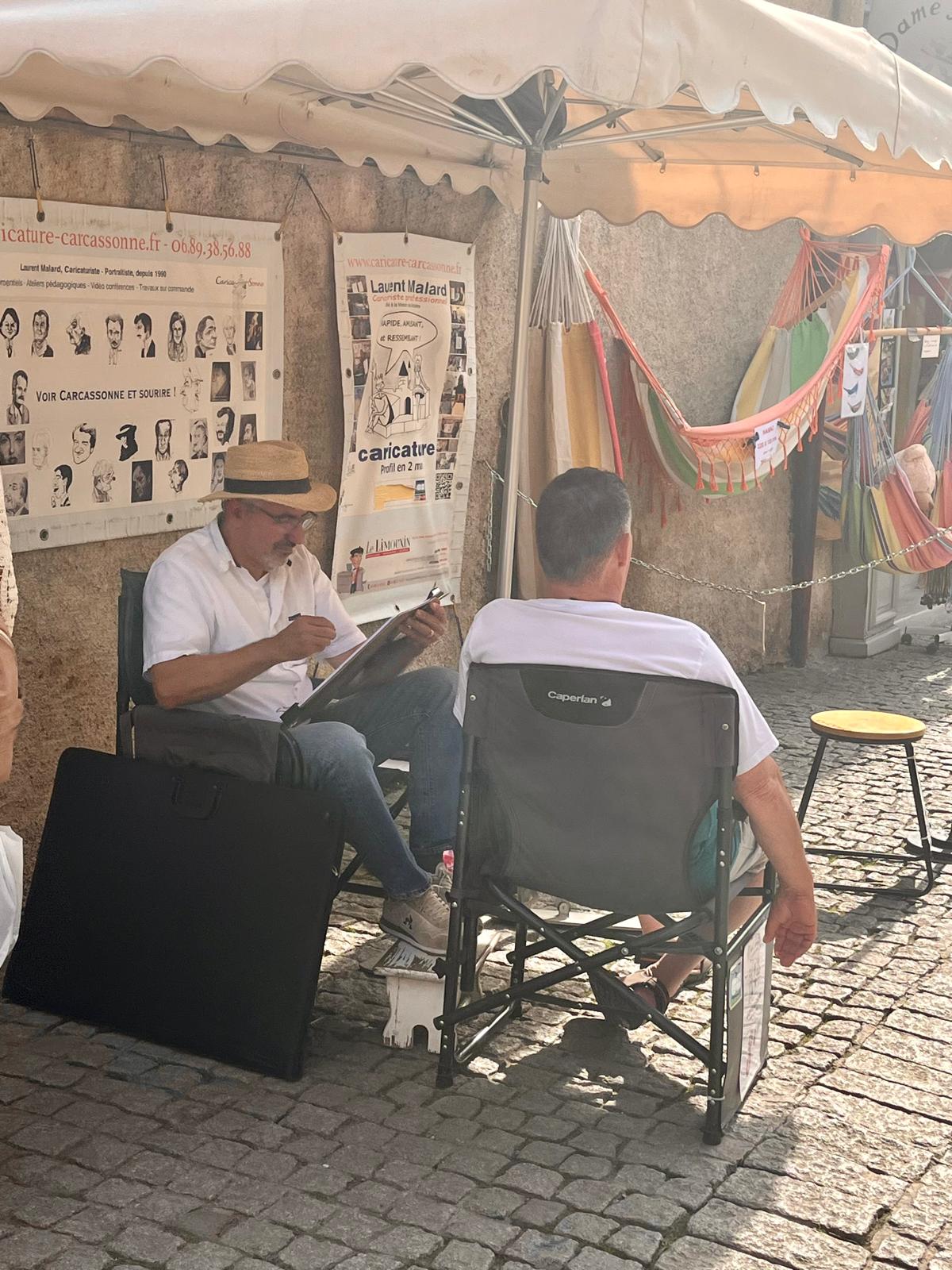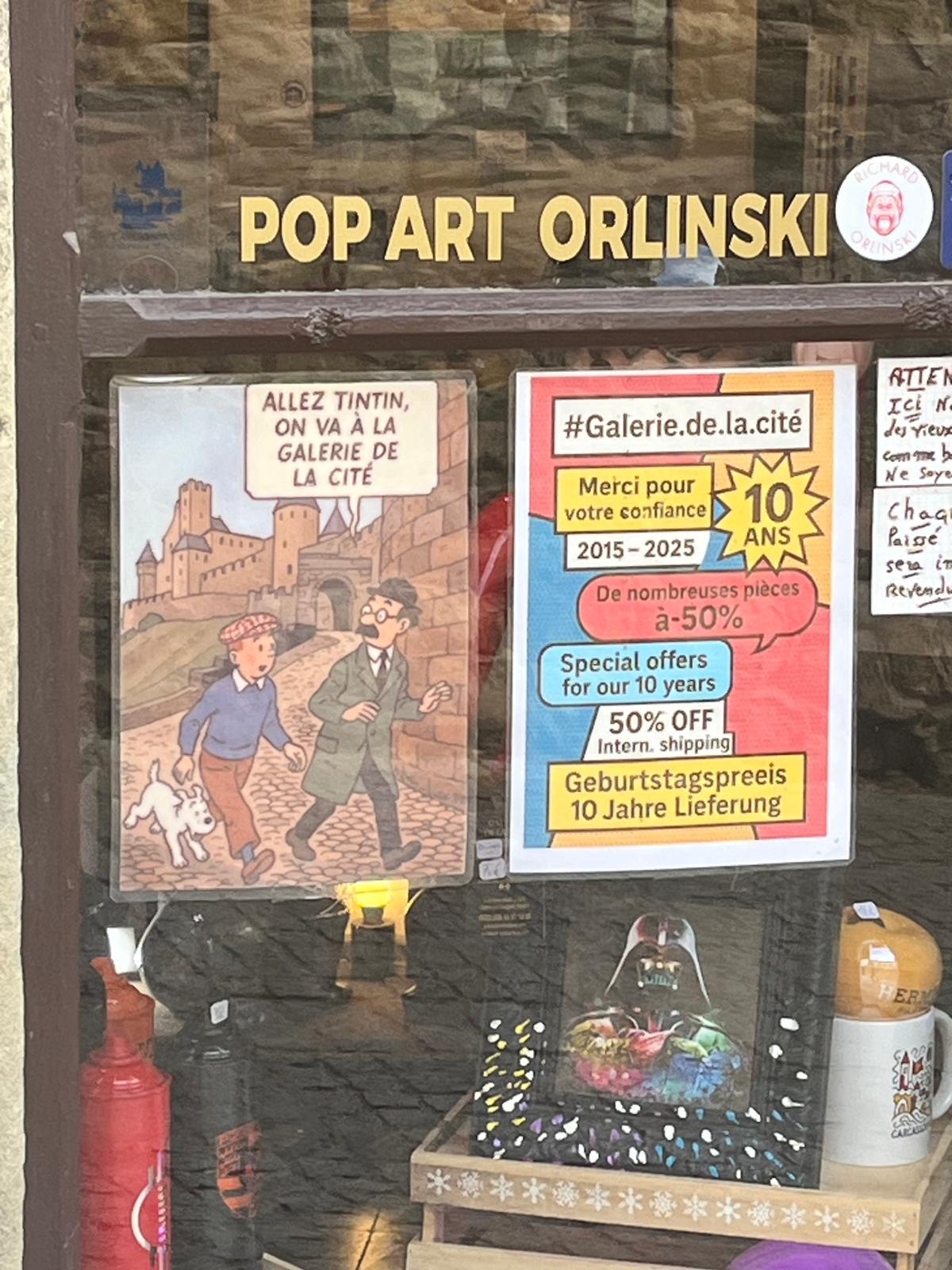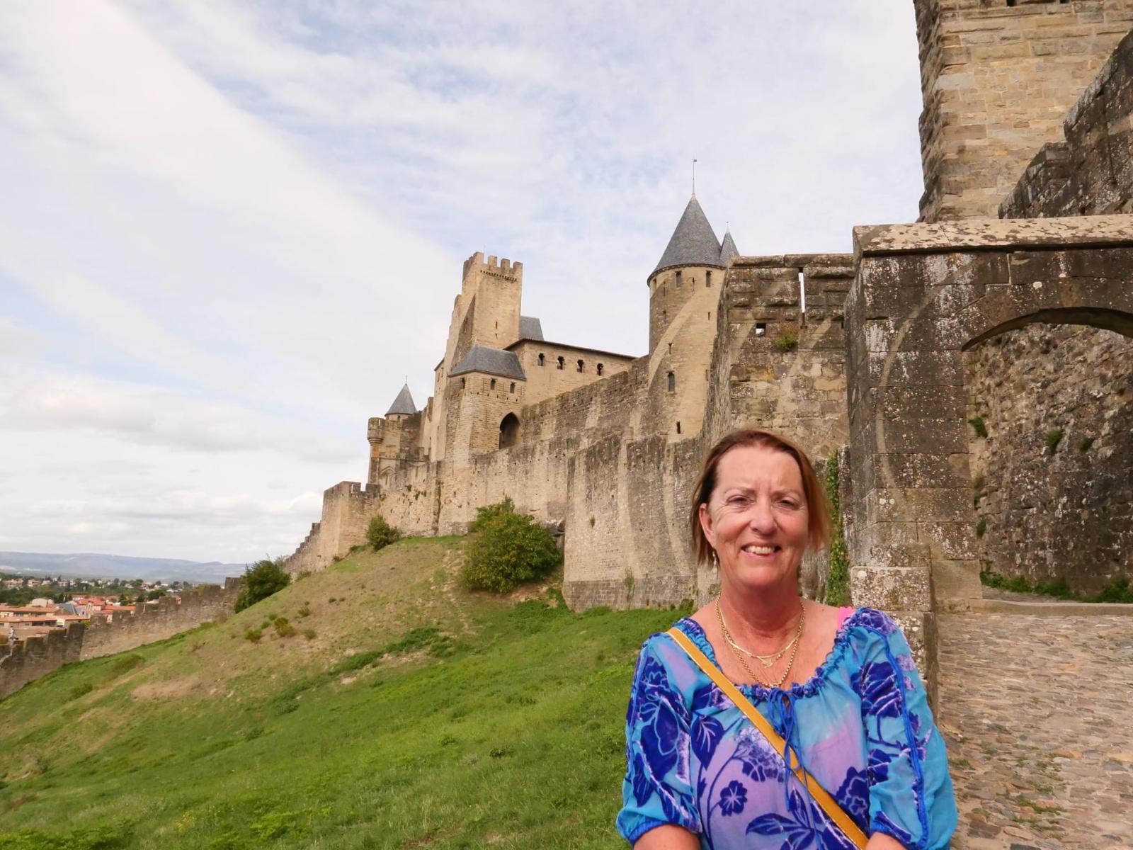 We komen steeds meer in het zonnige zuiden. We moeten ook een flinke bergkam over, maar Limoe kan het zeker aan. We staan op een CP en kunnen over een wandelpad, aan een stroompje naar de stad lopen. Zo’n 20 minuten. Mooi onder de bomen, is het heerlijk lopen. Het stadje ligt wat hoger en is helemaal ommuurd. Het is nu gezellig druk, maar in de zomer schat ik Mont Sint Michelachtige toestanden, of groepen mensen als op Koningsdag. Mooie winkels, en veel verschillende zaken, dat is toch leuker. Een Amerikaanse vrouw valt op de grond bij Pieter begint te aaien en te roepen dat zij thuis ook een teckel heeft. Netty zegt: “Dat geloof ik niet. ” Haar vriendinnen beginnen te lachen en denken nu ben je aan de beurt, inderdaad zien we foto’s van deze boerderij teckel. Totaal onverzorgd en inderdaad is er een teckel in te ontdekken. Erica, Pieters plukker, zou hier dagen mee bezig zijn 🙈. Leuk stadje om lekker doorheen te lopen. Onze vrijmibo bestaat uit gin-tonic, lekker worstje en slappe chips. Vanavond koken we zelf een camping diner, heerlijk.