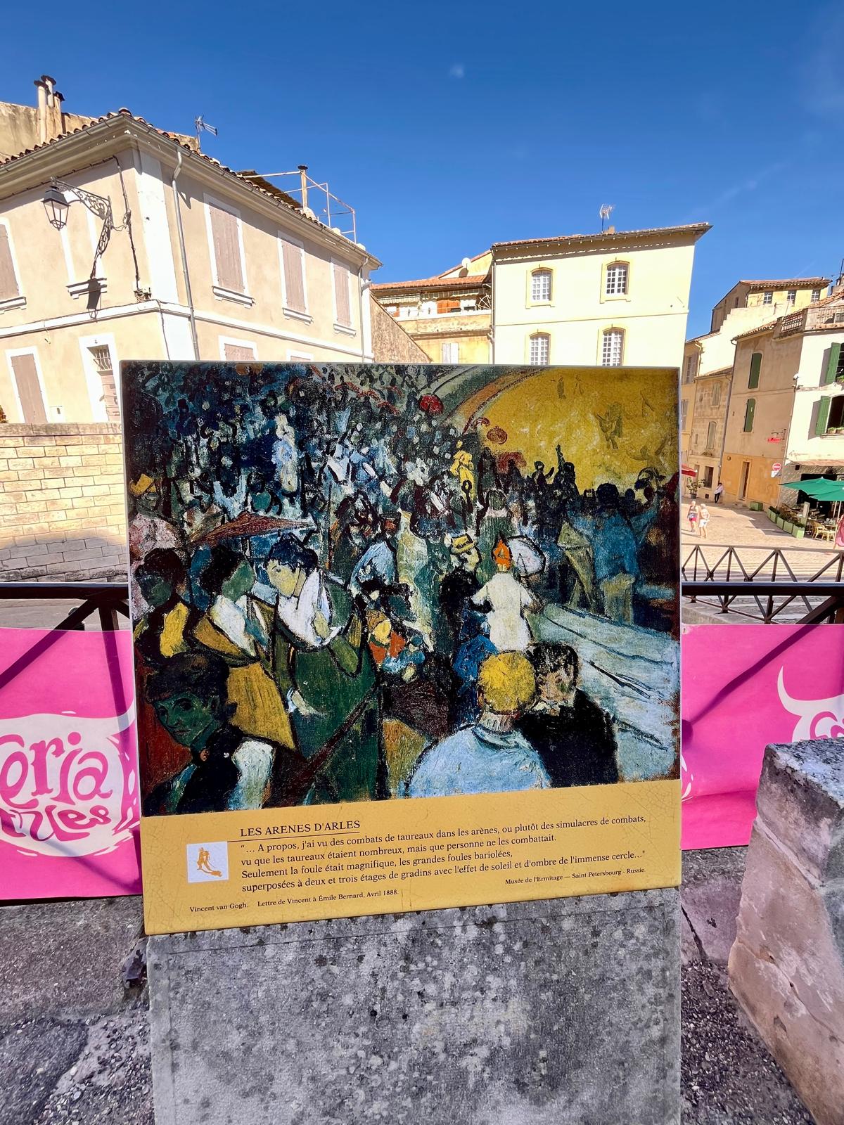 In het stadje wel wat sporen van Van Gogh, hij heeft de arena , nu stierenvechtersarena geschilderd. Heerlijk stadje om te lopen, vriendelijk, mooie doorkijkjes en veel gezelligheid.