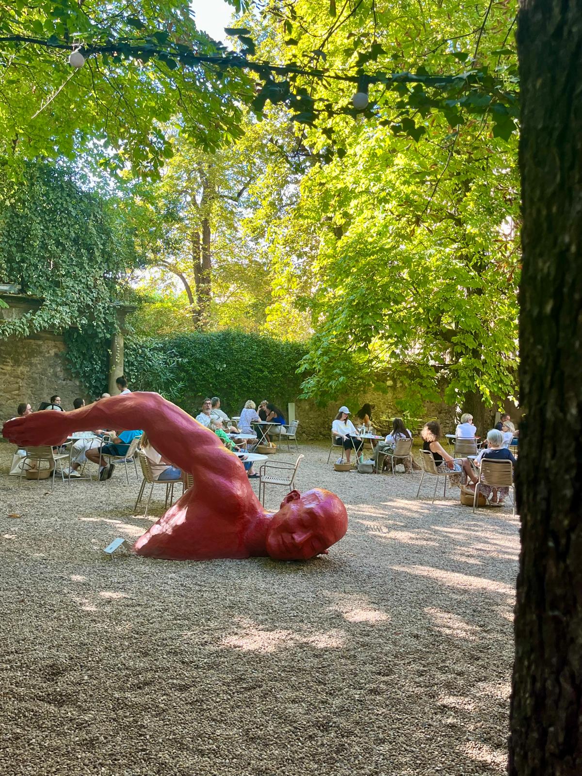 We balen wel over de slechte communicatie van de organisatie. Nergens op de sites te zien dat alles uitverkocht is. We wandelen door het park, en iedereen hier met een terras pikt een graantje mee van Cézanne-hype.