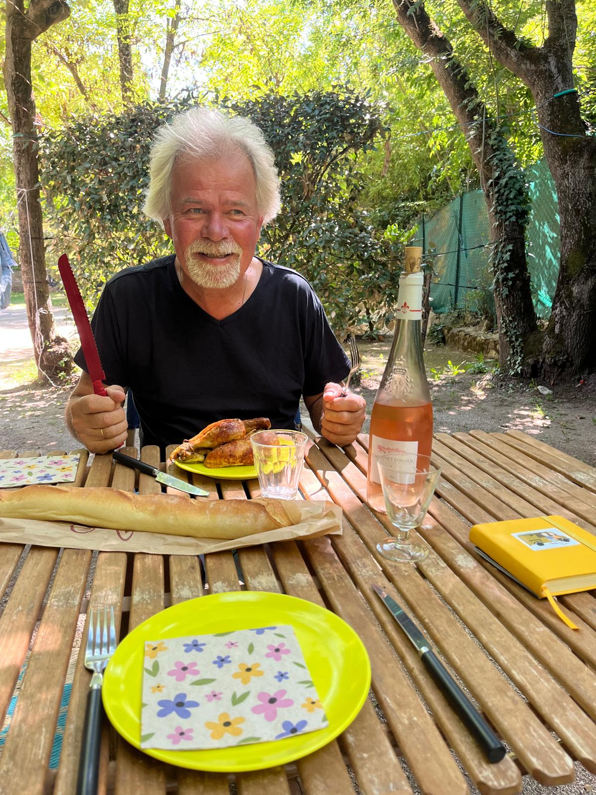 Anne scoort een poule roti en met een broodje en glaasje rosé kunnen we daarna met lijn 3 de stad wel in.