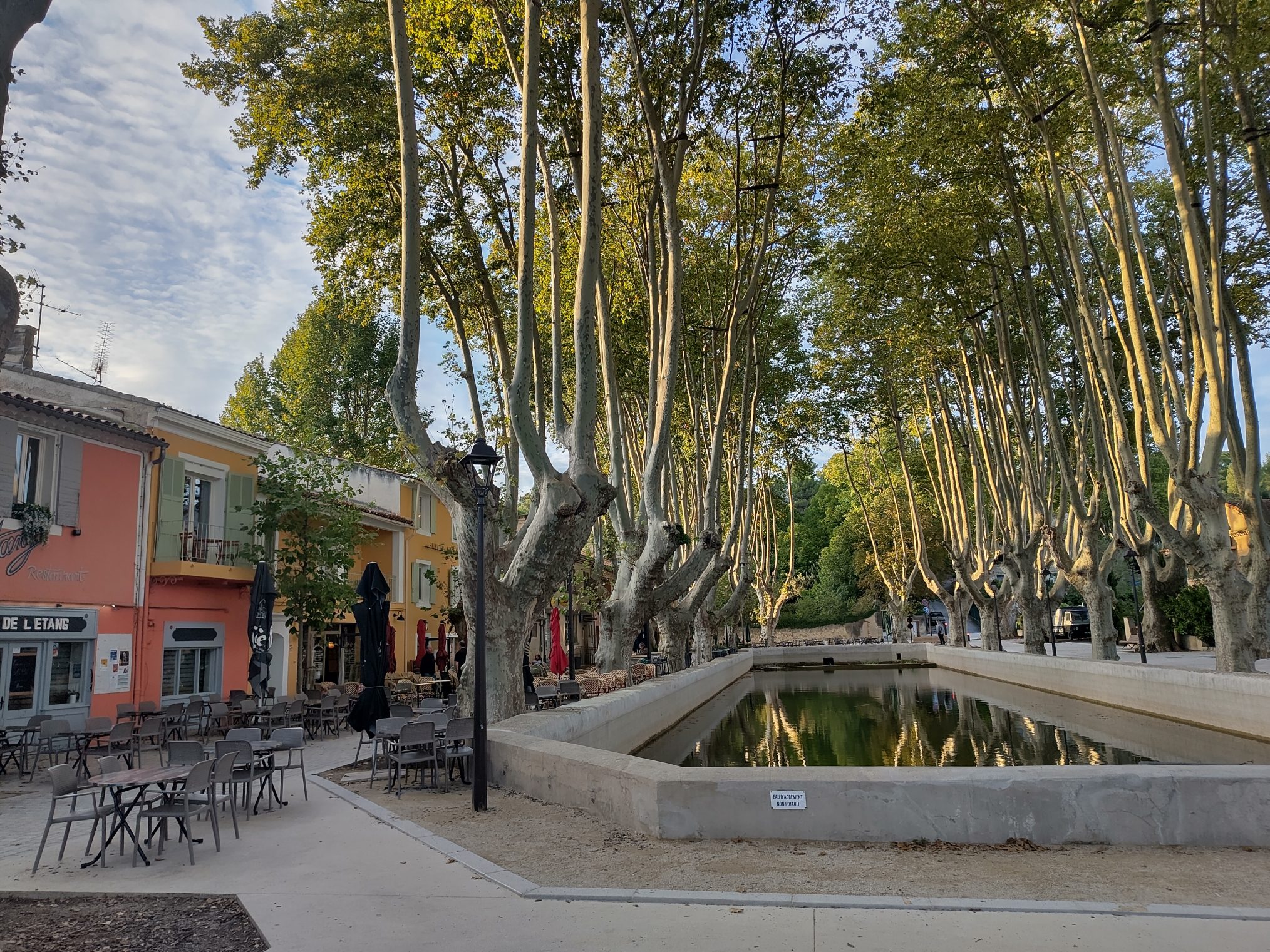 We lopen naar het dorp, door en langs de wijnvelden. Mooi authentiek dorp, met plein “ommuurd” door eiken en gezellige cafeetjes. Ook hier zijn er al een aantal dicht na waarschijnlijk een hele drukke zomer. Leuk om naar toe te lopen.